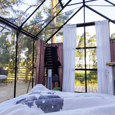 “Todella ihana majapaikka luonnonrauhaa ja pientä luksusta arvostaville! Kesähelteelläkin lasimökki viileni ihanasti yöksi. Puiden latvoja ja taivasta oli vain niin kiva katsella sängystä, ettei meinannut malttaa käydä nukkumaan :) Patiolta ja mökistä kaunis näkymä järvelle, pellolle ja pihan eläinten touhuihin. Elämyksellistä! Tämä kaupunkilainen ainakin nautti täysillä!”
